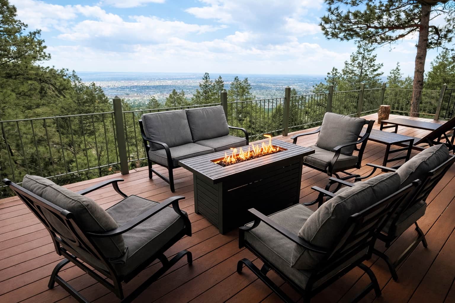 Expansive Outdoor Living: Two large decks overlooking the city with a Weber BBQ grill, fire table, and plush seating. Perfect for morning coffee or evening stargazing.